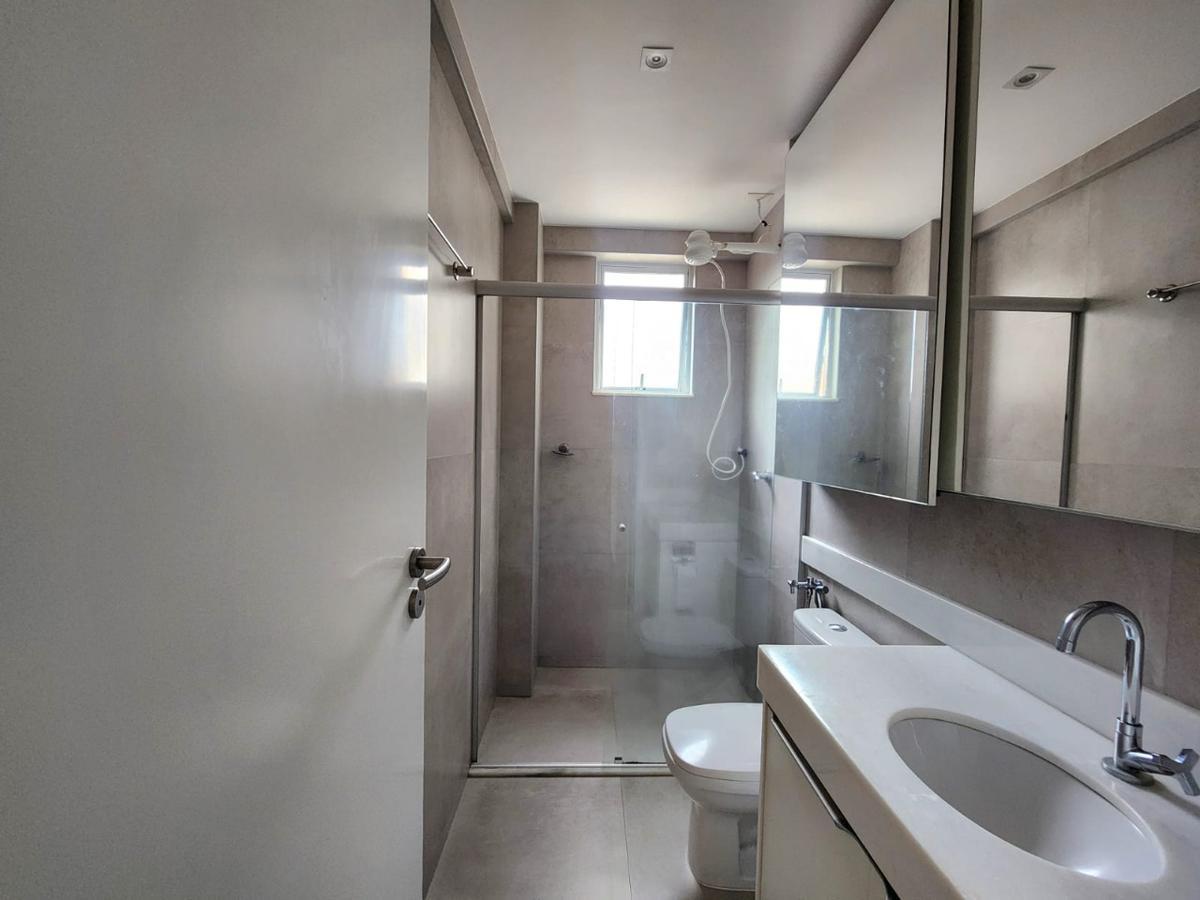 Apartamento com área interna de 73,20 m², sala com lavabo, cozinha com armários integrada com a sala, área privativa de aproximadamente 6 m² saindo pela sala, 02 quartos sendo todos suítes, rouparia, banhos com armários, box e espelhos, área de serviço, despensa. Pisos da sala, cozinha, área de serviço e despensa em porcelanato polido, pisos dos quartos em vinílico.