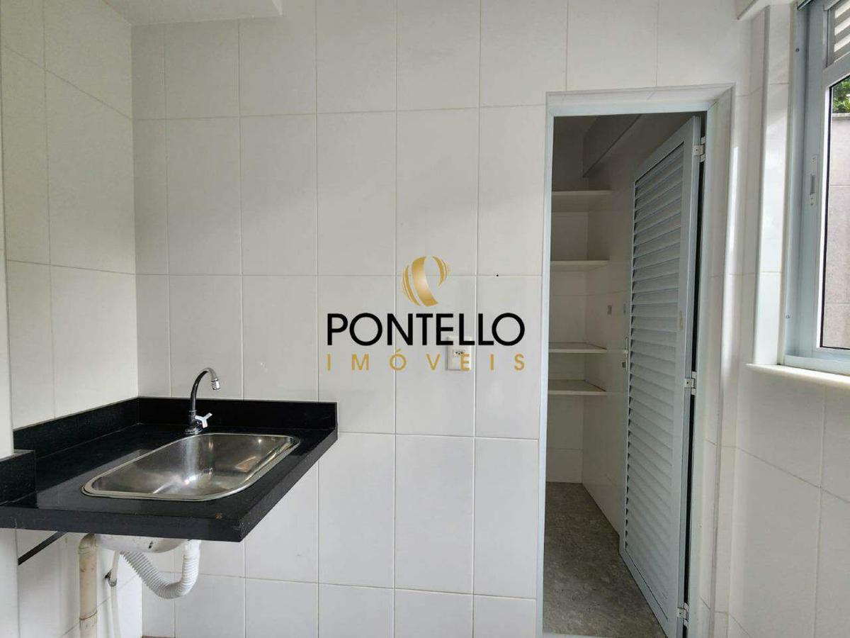 Unidade com 66,562 de área privativa, sala com lavabo, cozinha com armários integrada com a sala, 02 quartos todos com suíte, rouparia, banhos com armários, box e espelhos, área de serviço, despensa. Pisos em porcelanato na sala e cozinha e vinílico nos quartos. Duas vagas de garagem.