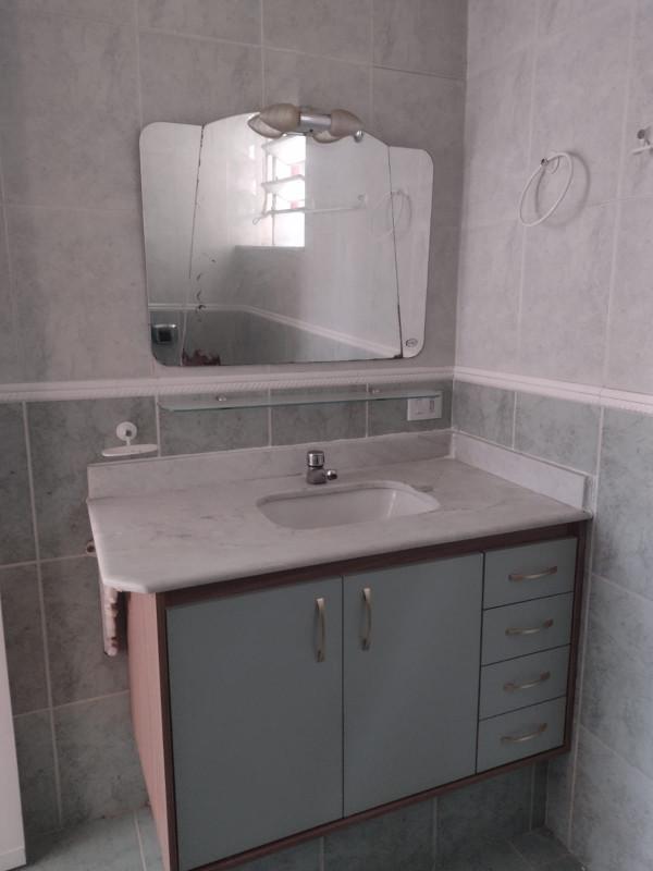 - Banho social com box em blindex, bancada em mármore e com armários (piso em cerâmica);