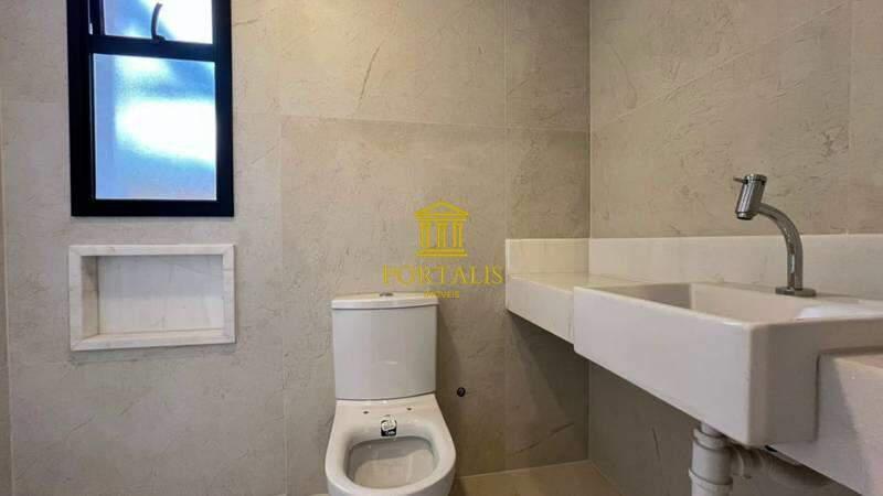 3 quartos amplos, todos com atenuação de ruídos, piso vinílico de madeira, sendo uma suíte com bancada em mármore branco e piso em porcelanato, e duas semi-ssuítes com piso em porcelanato e pia em cuba de apoio; o banheiro tem porta de acesso para os dois quartos