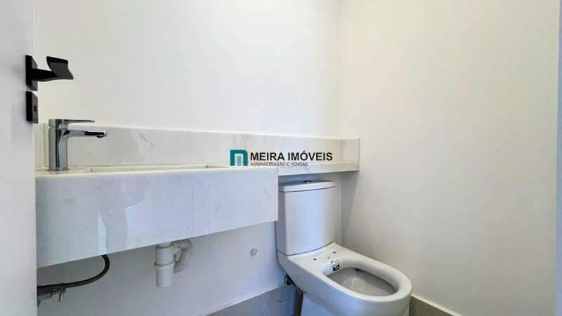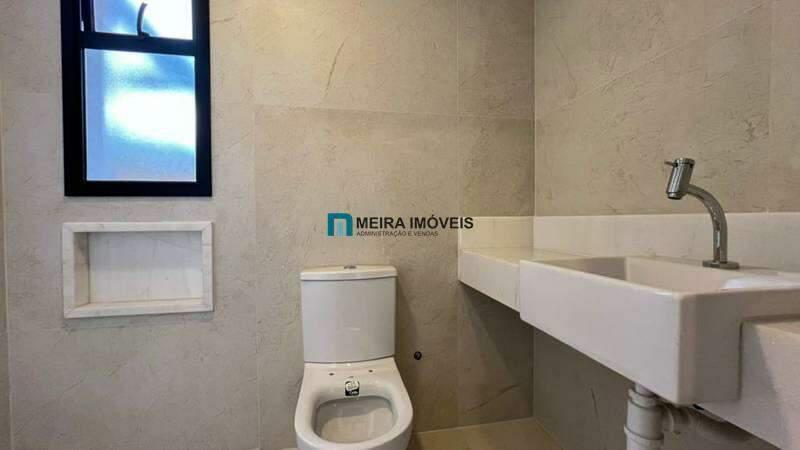 ¿ 03 quartos amplos, todos com atenuação de ruídos, piso vinílico de madeira, sendo 01 suíte com bancada em mármore branco e piso em porcelanato, e 02 semi-suítes com piso em porcelanato e pia em cuba de apoio