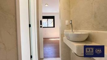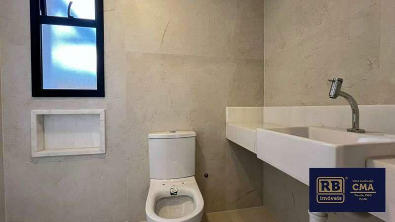 3 quartos amplos, todos com atenuação de ruídos, piso vinílico de madeira, sendo uma suíte com bancada em mármore branco e piso em porcelanato, e duas semi-ssuítes com piso em porcelanato e pia em cuba de apoio; o banheiro tem porta de acesso para os dois quartos