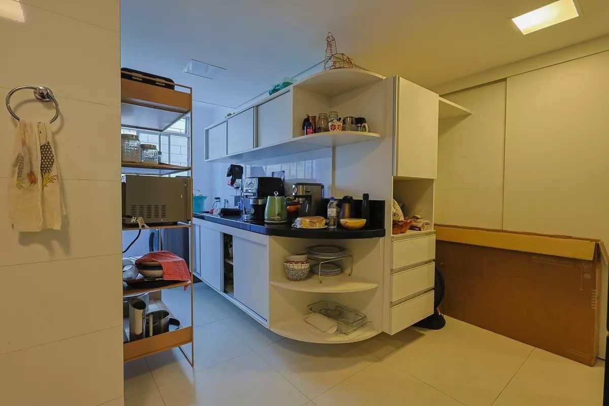 Cozinha funcional, equipada com armários planejados e bancadas em granito.