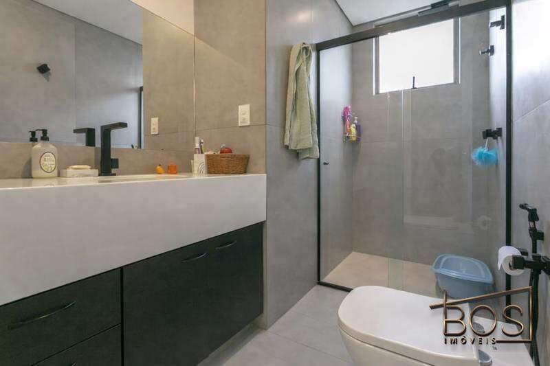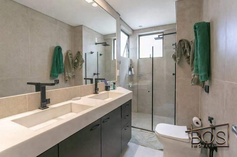 - Banheiros (social e suíte) com box em blindex, armários e espelhos.