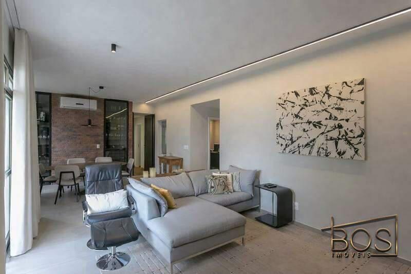 - Sala para 02 ambientes, com piso em porcelanato, teto em gesso, projeto de iluminação da A de Arte, ar-condicionado, adega e varanda integrada.
