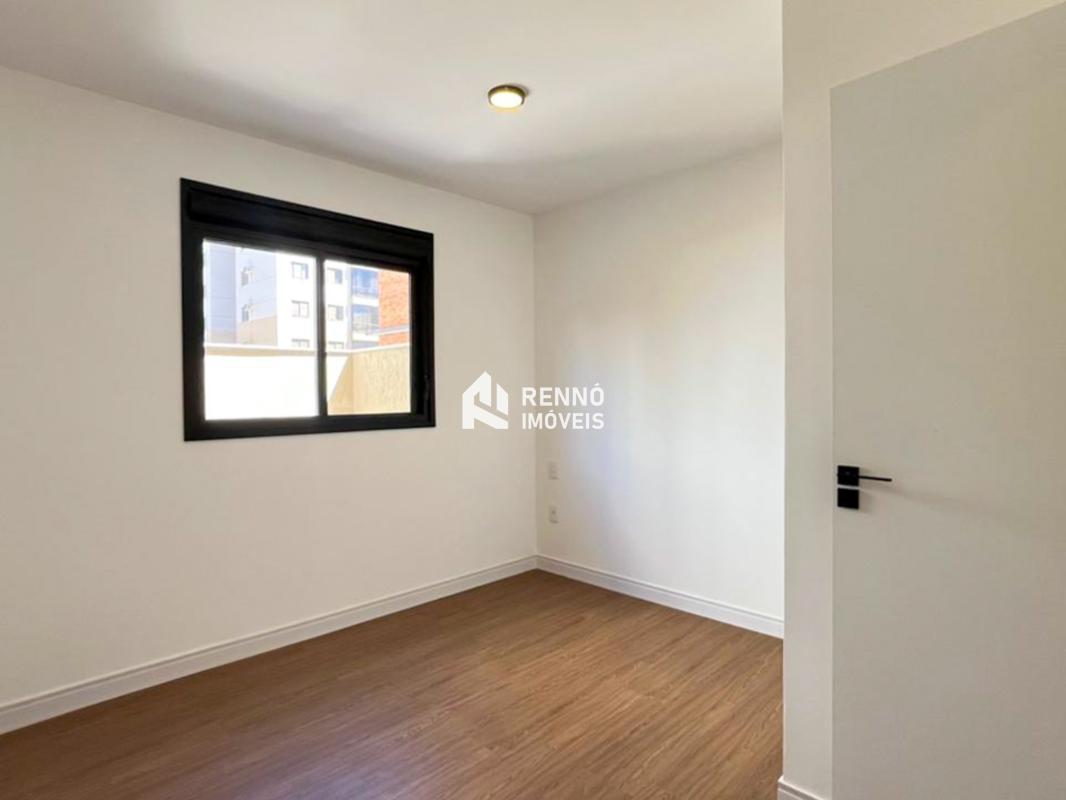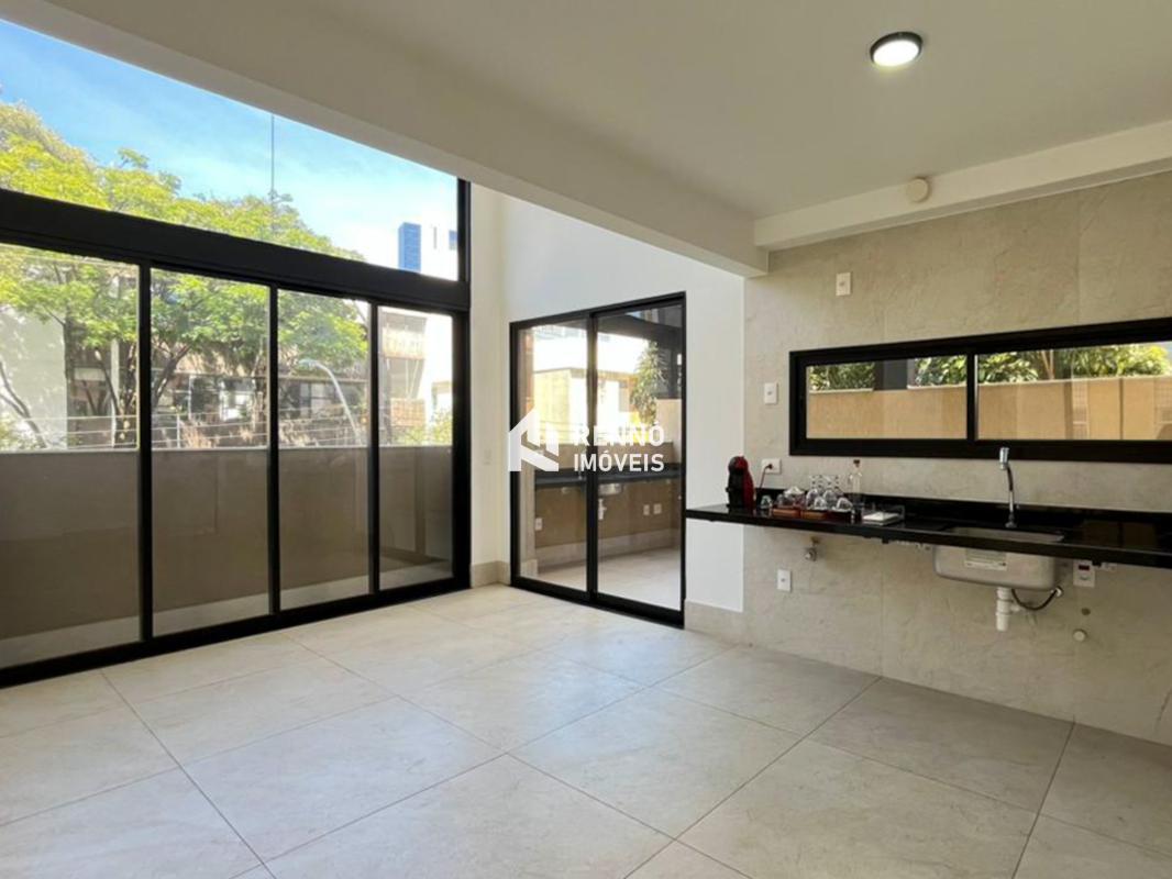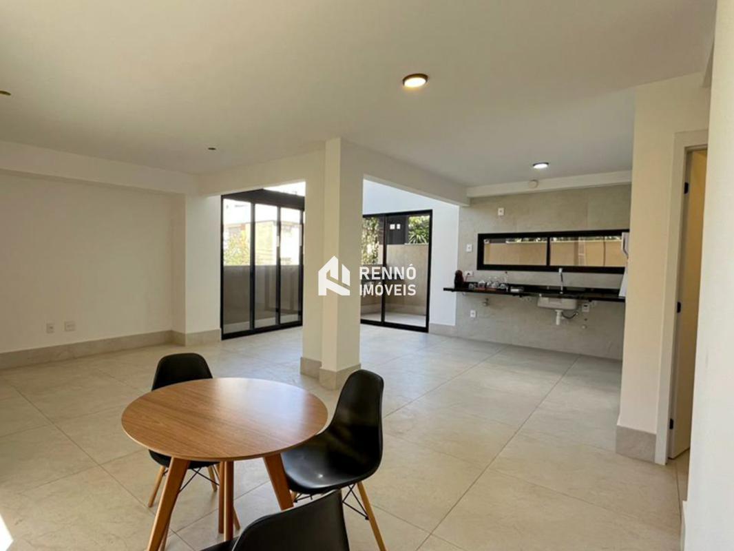 1 sala espaçosa para dois ambientes, com piso em porcelanato Portobello, conjugada com a cozinha e uma varanda ampla Área Privativa espaçosa, excelente para criar um espaço gourmet com bancada em granito preto 3 quartos amplos, todos com atenuação de ruídos, piso vinílico de madeira, sendo uma suíte com bancada em mármore branco e piso em porcelanato, e duas semi-ssuítes com piso em porcelanato e pia em cuba de apoio; o banheiro tem porta de acesso para os dois quartos Cozinha ampla com bancada em granito preto Lavabo com bancada esculpida em mármore branco Área de serviço com tanque 3 vagas de garagem, duas livres e uma em linha