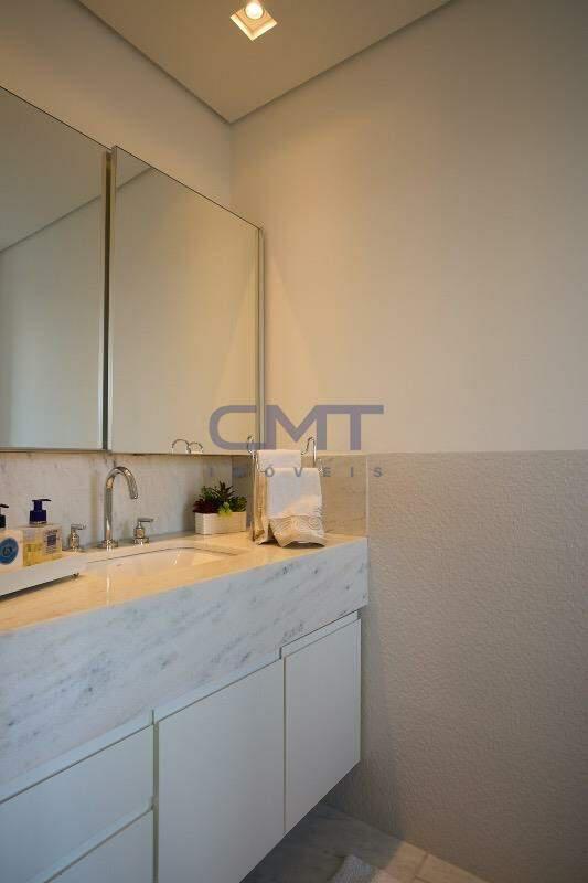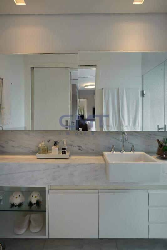 3 amplos banhos, sendo 3 suítes. Todos com box em blindex transparente, armários planejados, piso e bancada em mármore, com cuba dupla sobreposta em duas das suítes.