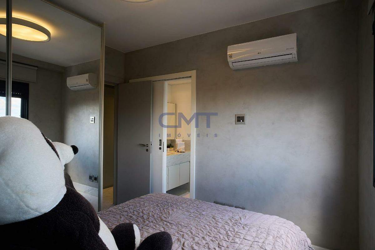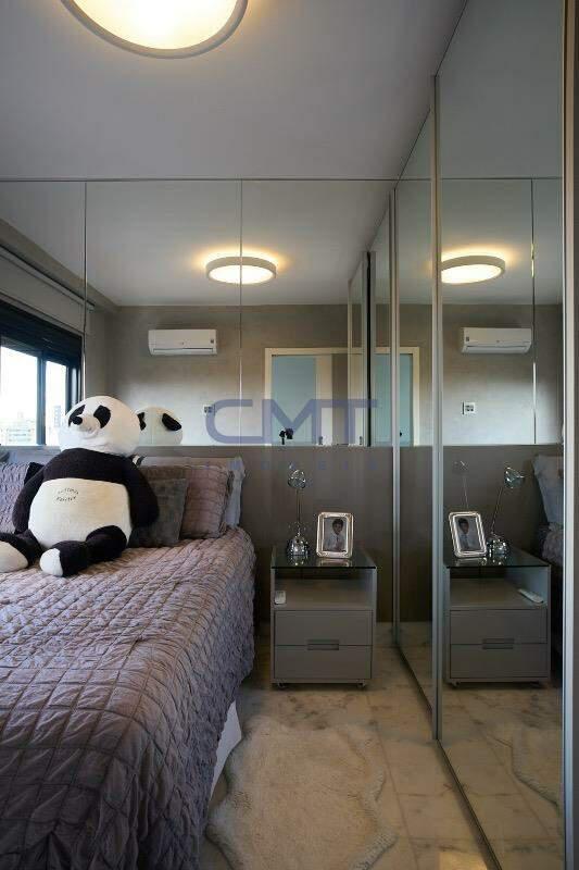 A planta original do imóvel conta com 4 quartos, porém um desses foi convertido, ficando 3 suítes, sendo uma máster com closet e 2 suítes. Todos com armários planejados, piso em mármore, ar-condicionado e janelas com cortina corrediça, garantindo um ambiente arejado, silencioso e escuro quando necessário.