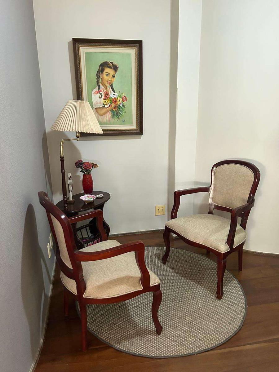 São 3 quartos com armários, sendo 1 suíte, além de 5 ambientes de sala (TV, estar, copa, escritório e sala de leitura), lavabo, cozinha ampla e arejada com ótima ventilação natural, área de serviço independente e quarto e banho de serviço.