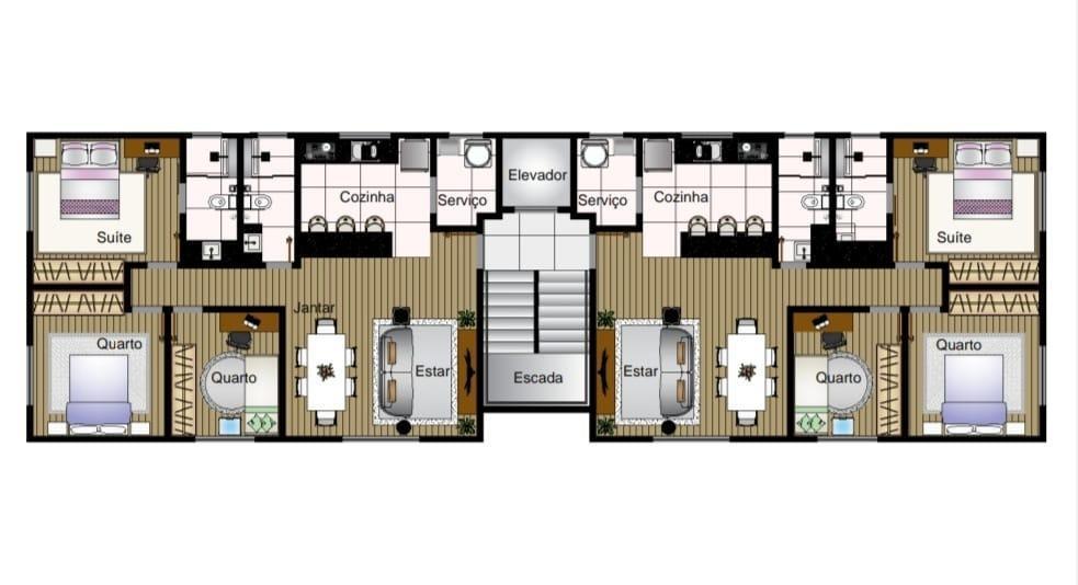 Apartamento de 3 quartos, sendo 1 suíte Sala Cozinha Área de serviço Banho social 2 vagas Aceita financiamento. Término da obra previsto para Março de 2024. Fotos ilustrativas Contato: 31 [TELEFONE] Luana Agende agora seu horário de visita com nosso consultor. Preços e condições poderão sofrer alteração sem aviso prévio!
