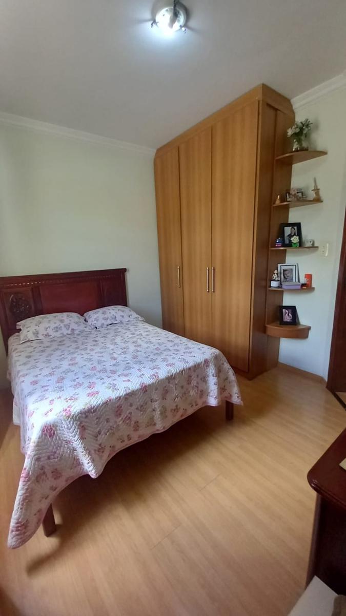 Apartamento com piso revestido em porcelanato na sala, cerâmica na cozinha, e laminado nos quartos.