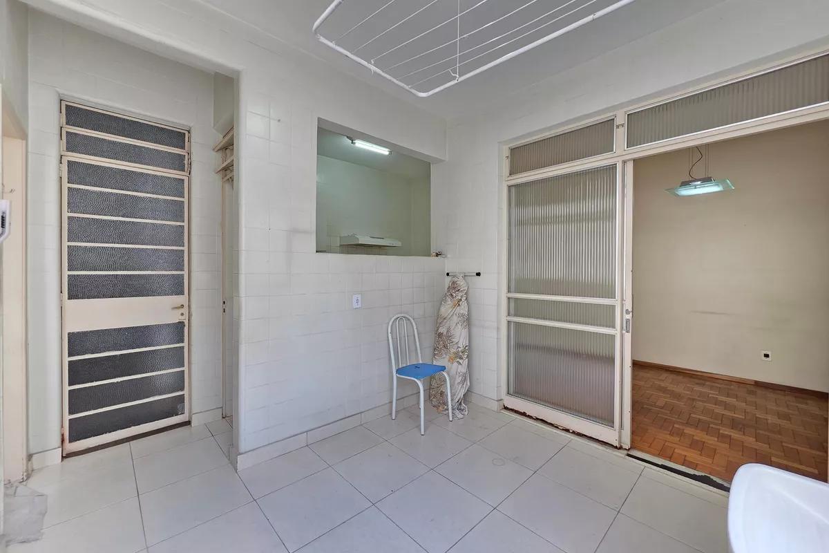 Apartamento com área de 178m², sala ampla para 02 ambientes com piso em taco de madeira, 03 quartos amplos com armários e piso em taco de madeira, sendo 01 suíte com pia em coluna de apoio e box em blindex, banheiro social com bancada em granito, armários, bidê e box em blindex, cozinha espaçosa com piso em cerâmica, bancada em granito e armários, área de serviço ampla com tanque e DCE.