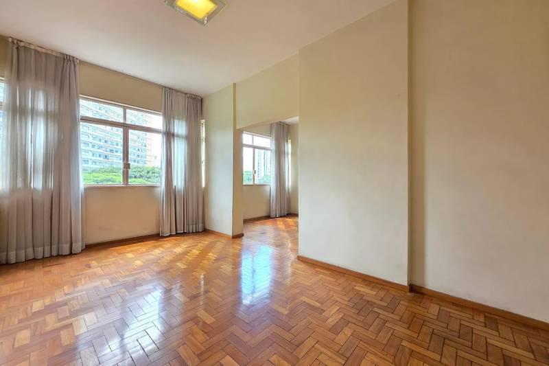 1 sala ampla para dois ambientes com piso em taco de madeira