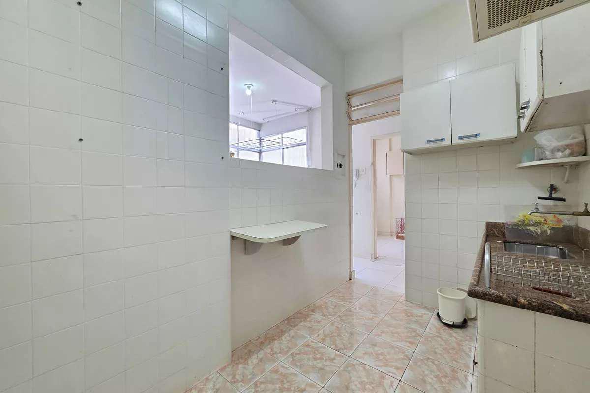 Cozinha espaçosa com piso em cerâmica, bancada em granito e armários