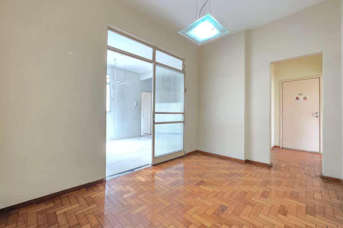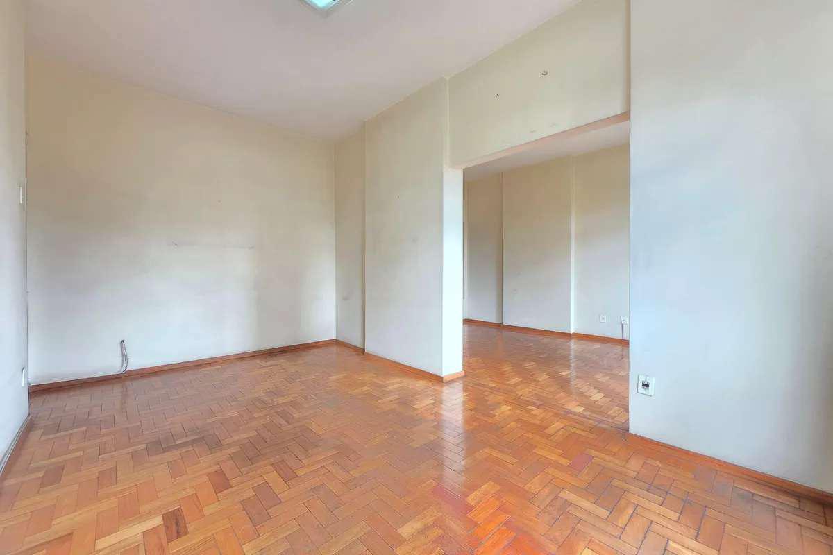 1 sala ampla para dois ambientes com piso em taco de madeira