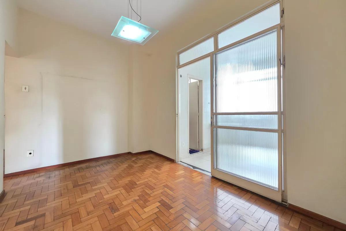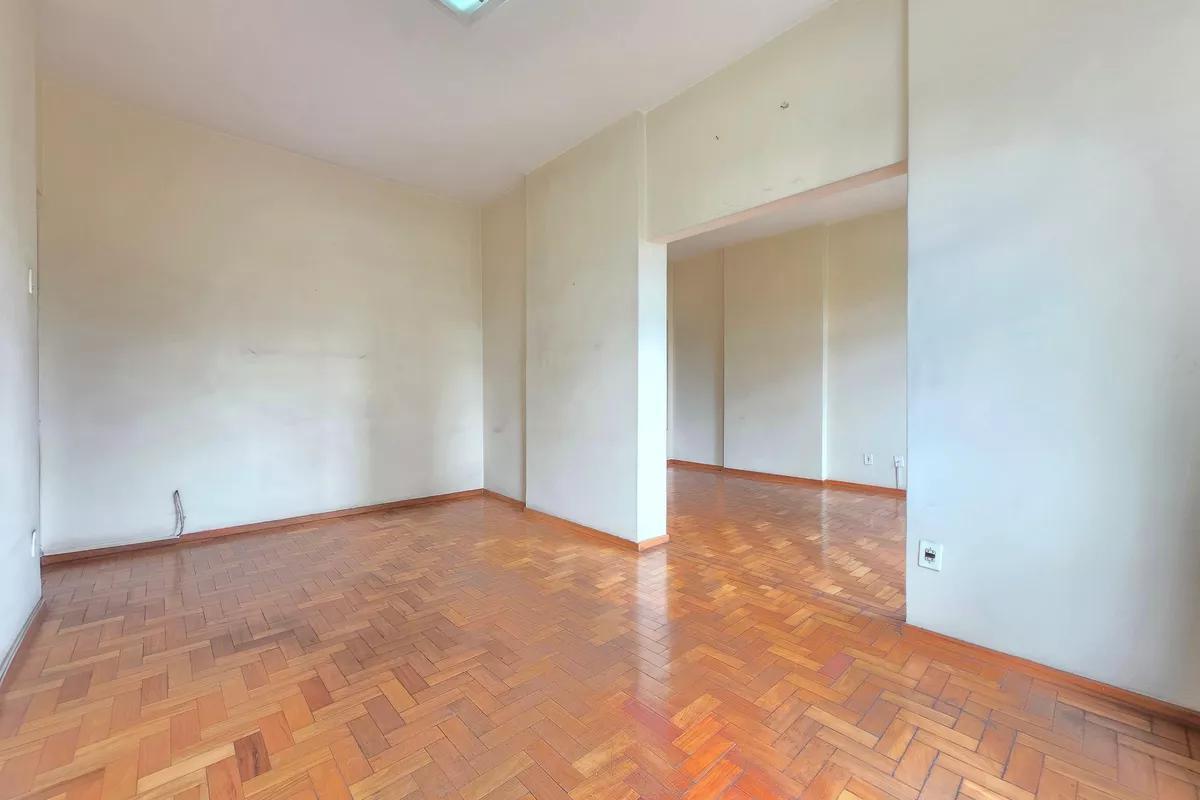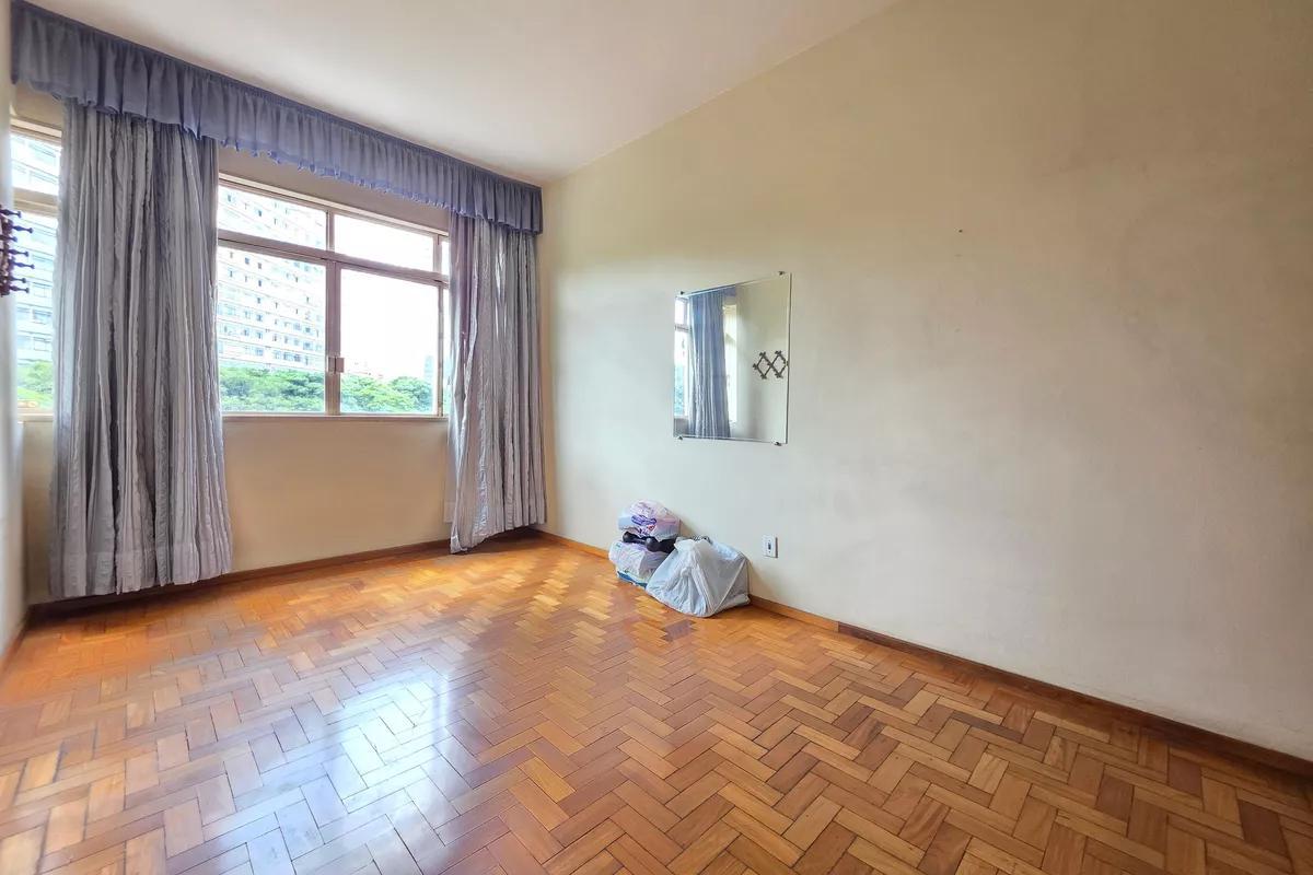 1 sala ampla para dois ambientes com piso em taco de madeira 3 quartos amplos, todos com piso em taco de madeira, sendo uma suíte com bancada em granito, armários, bidê e box em blindex Cozinha espaçosa com piso em cerâmica, bancada em granito e armários Banheiro social com pia com coluna de apoio, espelho e box em blindex Área de serviço ampla com tanque DCE Não possui vaga de garagem