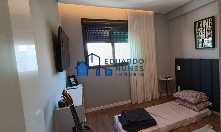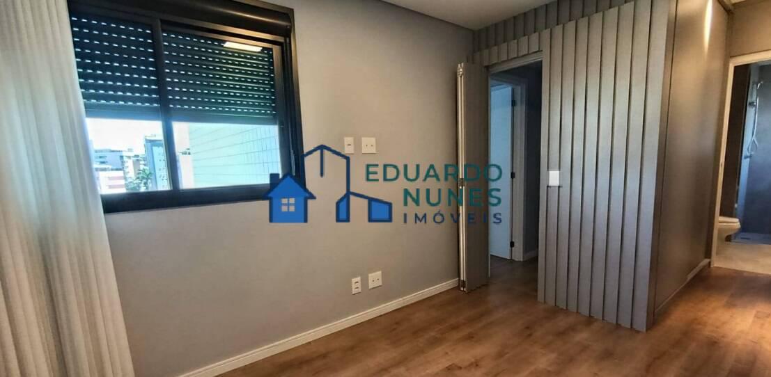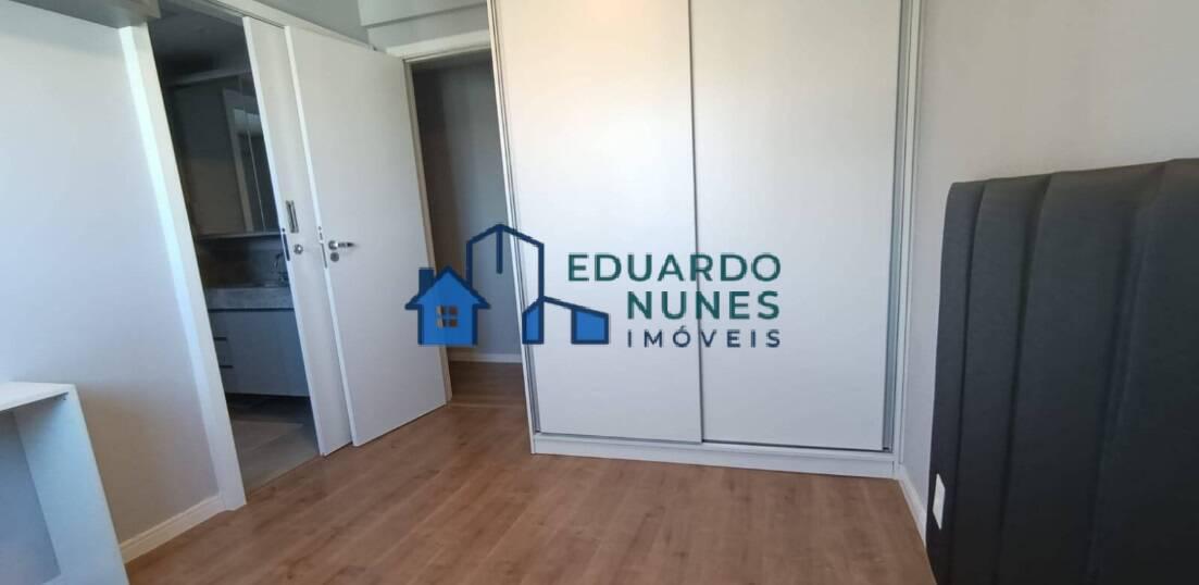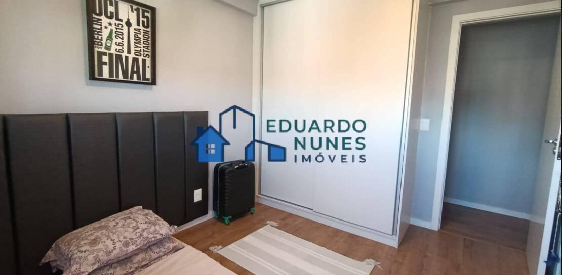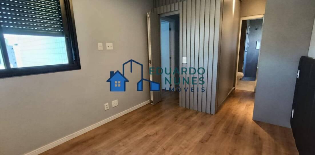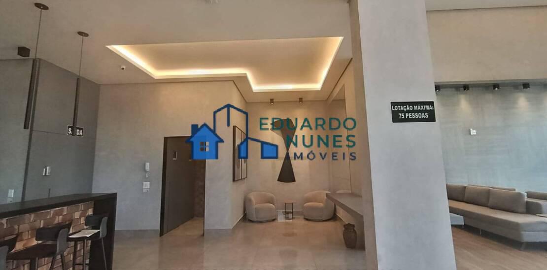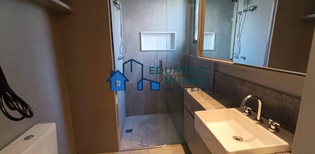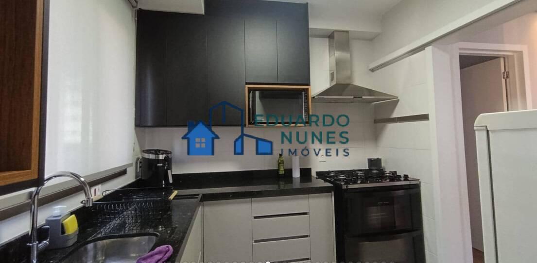 O apartamento conta com uma ampla sala para dois ambientes, climatizada com ar-condicionado, lavabo e acabamento refinado com bancadas em granito.