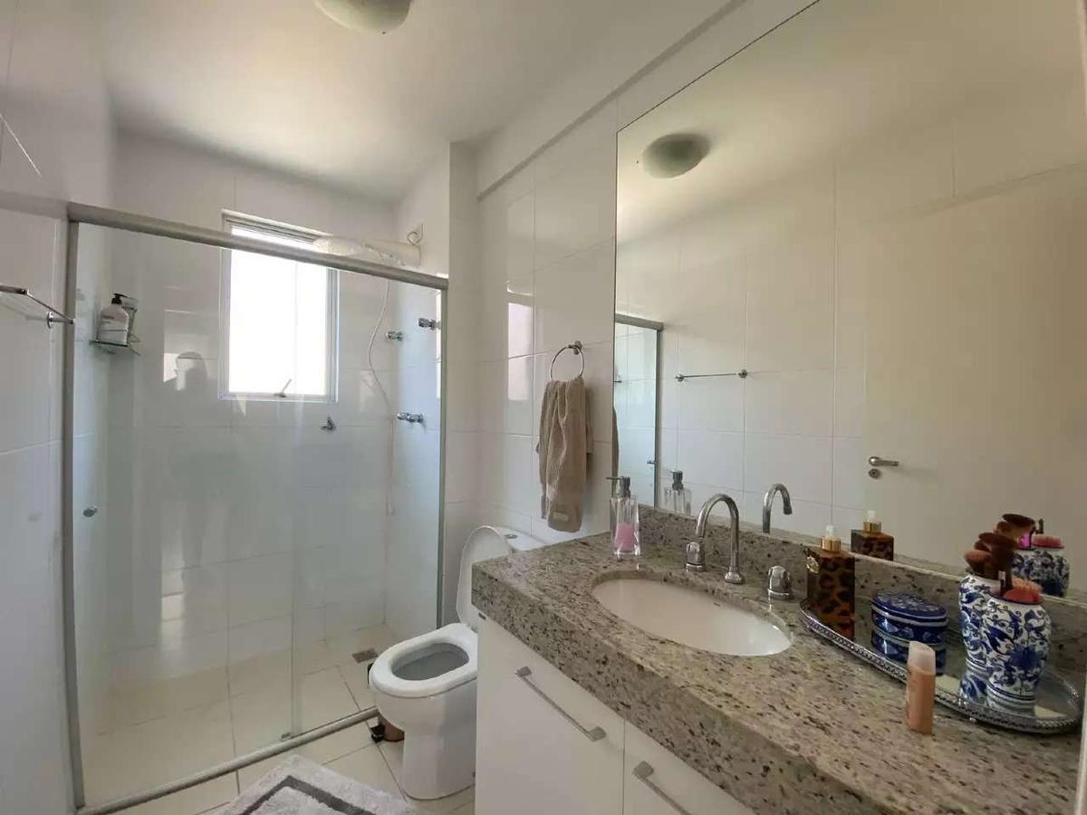 Os banheiros (suíte e social) possuem pisos em cerâmica, bancadas em granito, armários e box com vidro temperado.