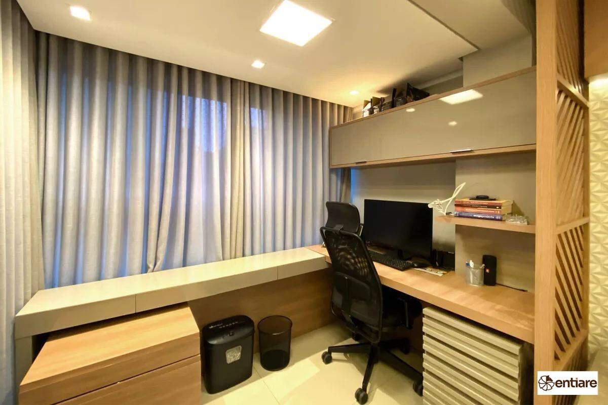 São 3 quartos, sala para 2 ambientes, varanda gourmet, escritório, cozinha espaçosa toda montada, área de serviço arejada e DCE;