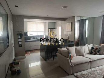 Cozinha americana com armários planejados, bancada em granito e excelente integração aos ambientes