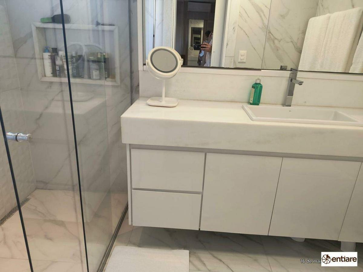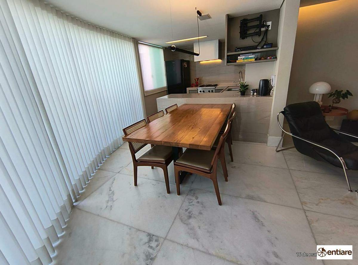 Apartamento amplo, espaçoso, é área privativa, mas fica em andar alto, com acabamento de alto padrão, claro, arejado e com privacidade.