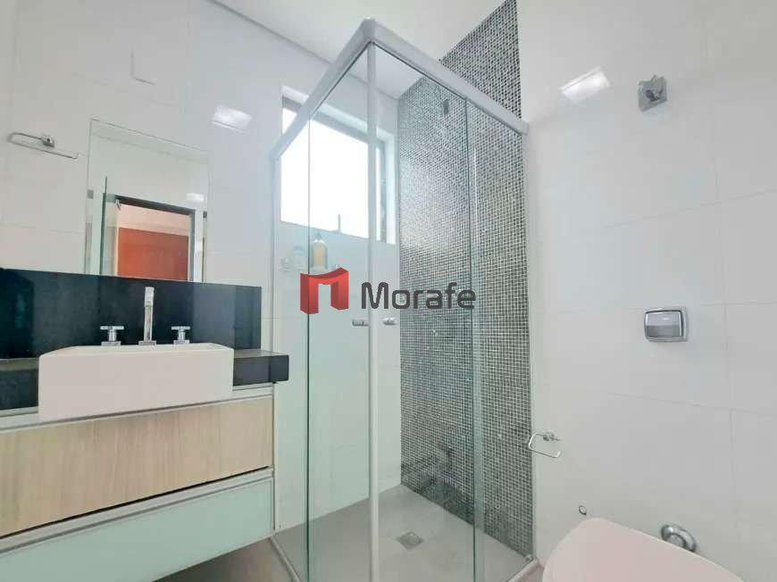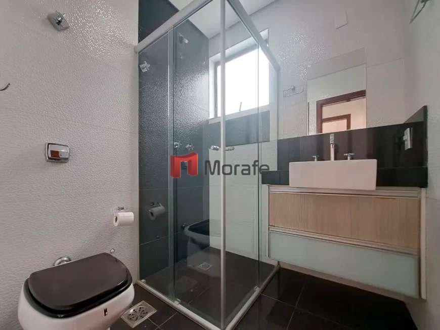 Banheiros: Banheiros com armários, box de vidro e espelhos.