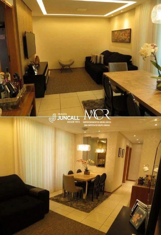 Apartamento com aproximadamente 85m² distribuído em sala para dois ambientes com piso em cerâmica.
