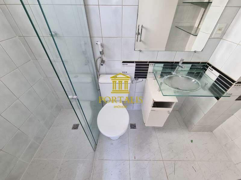 Banheiros com bancadas em granito, armários planejados e box em vidro temperado