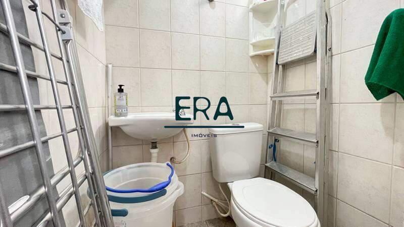 Banheiros (social e suíte) com acabamento em cerâmica, armários planejados, espelhos e box em blindex.