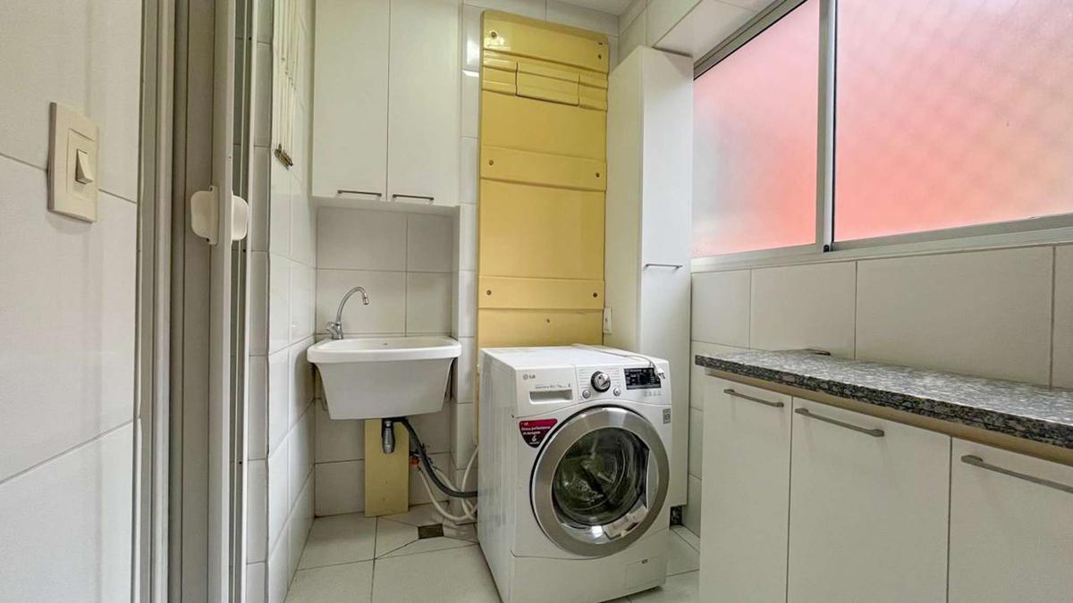 - Ampla, com piso em cerâmica e armários planejados.