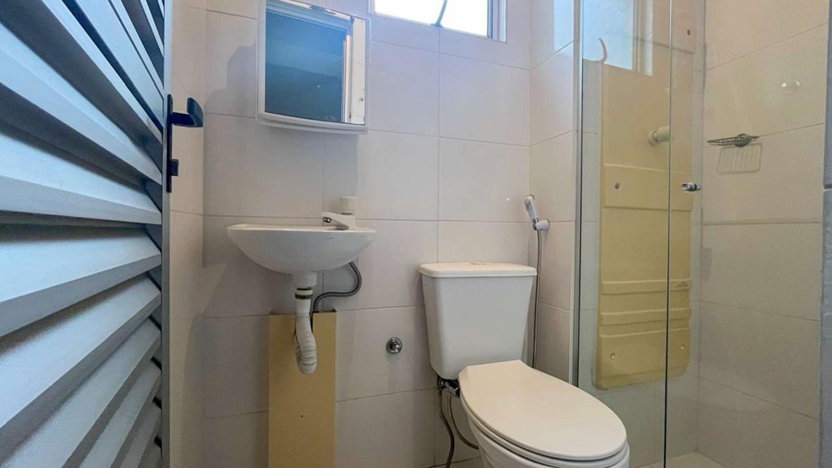 -Banheiro social com armário e box blidex.
