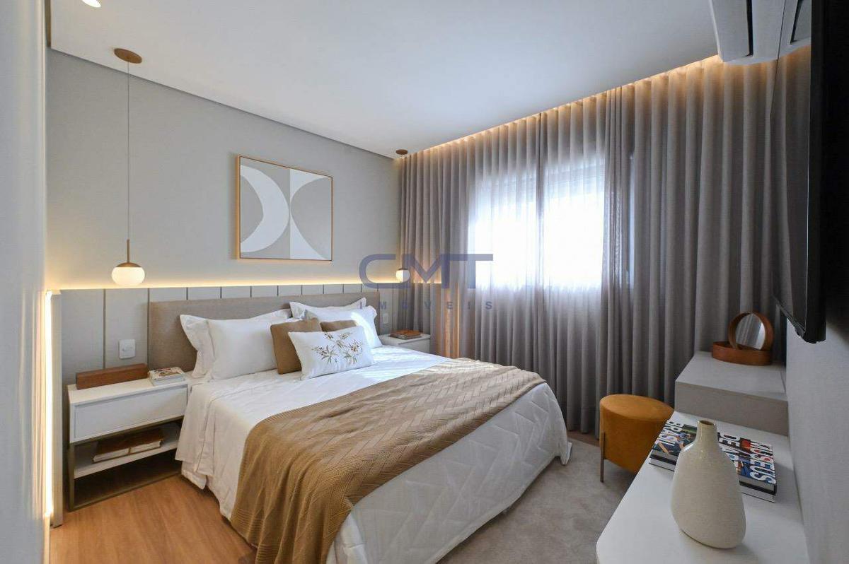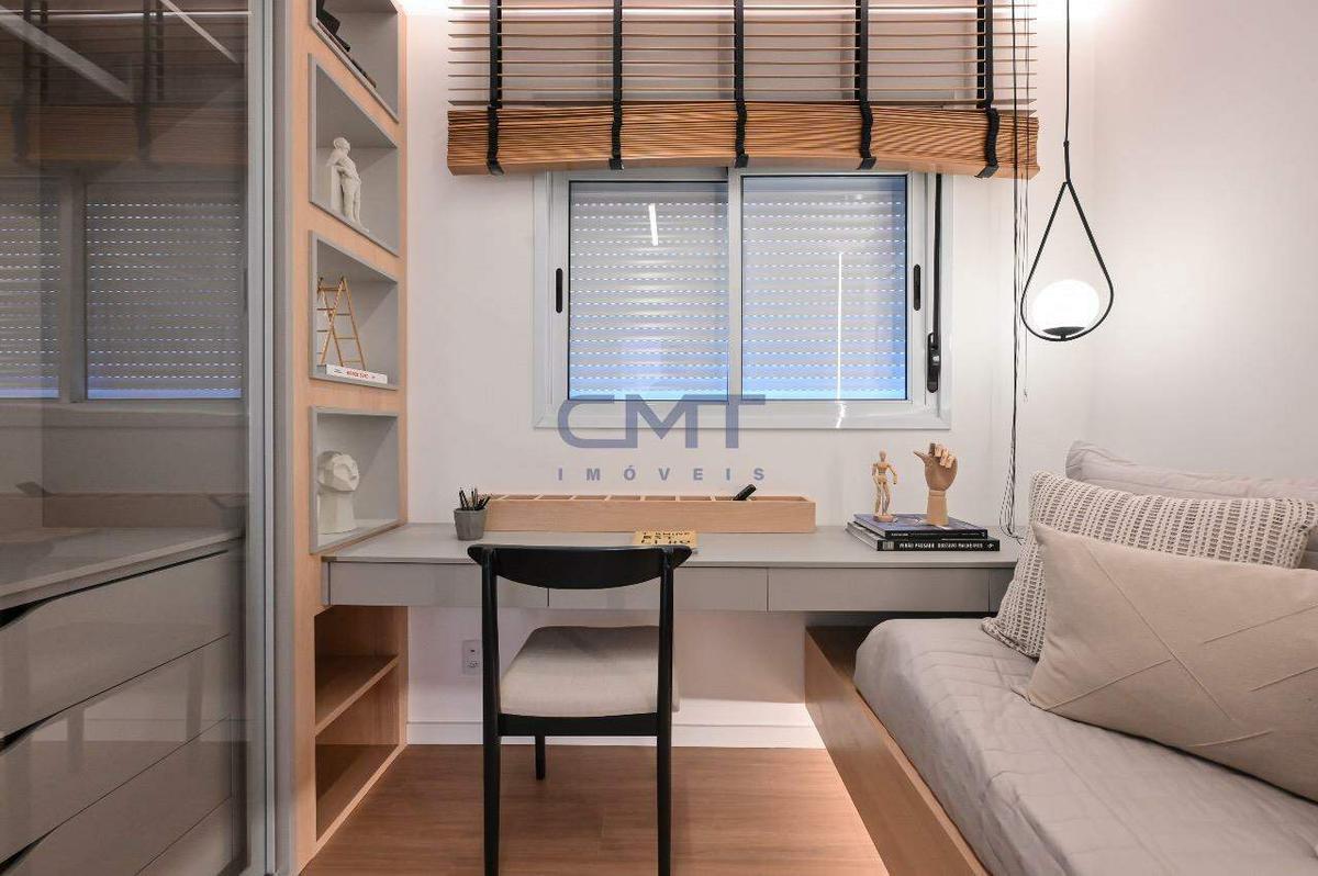 3 quartos sendo 1 suíte com closet e 2 dormitórios com piso em laminado de madeira, tomadas USB, borrachas antirruído nas portas, janelas em esquadrias integradas com persianas deslizantes, garantindo um ambiente arejado, silencioso e escuro quando necessário.