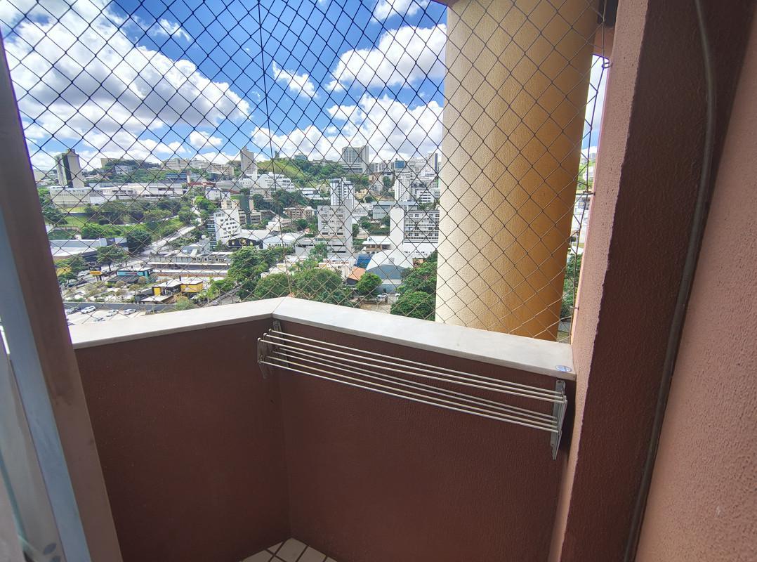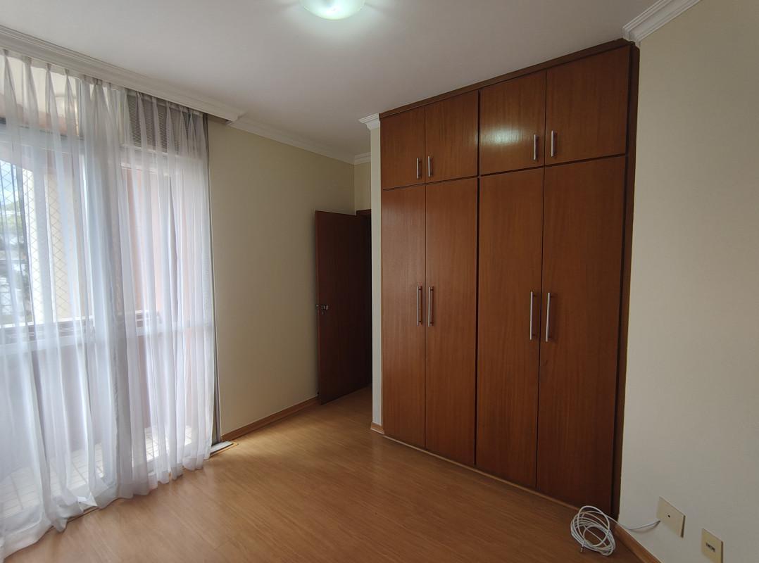 Três quartos com armários planejados e uma suíte, e varanda.