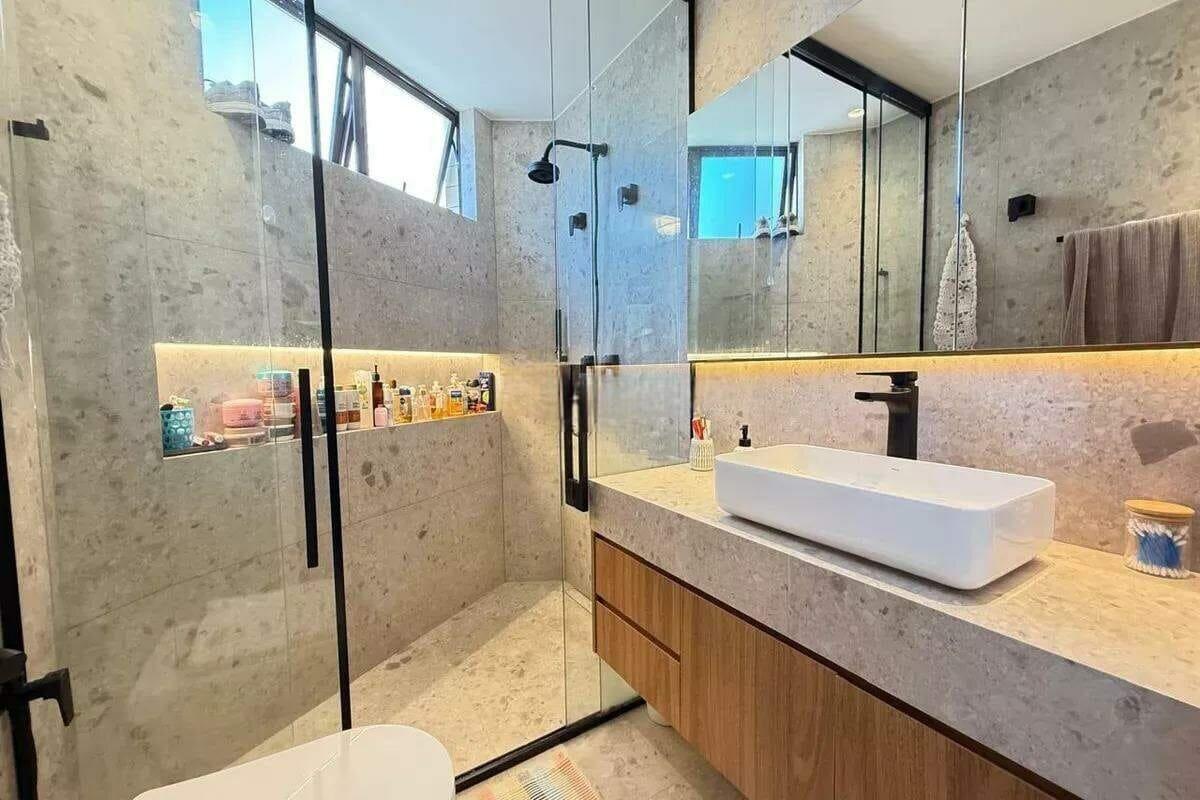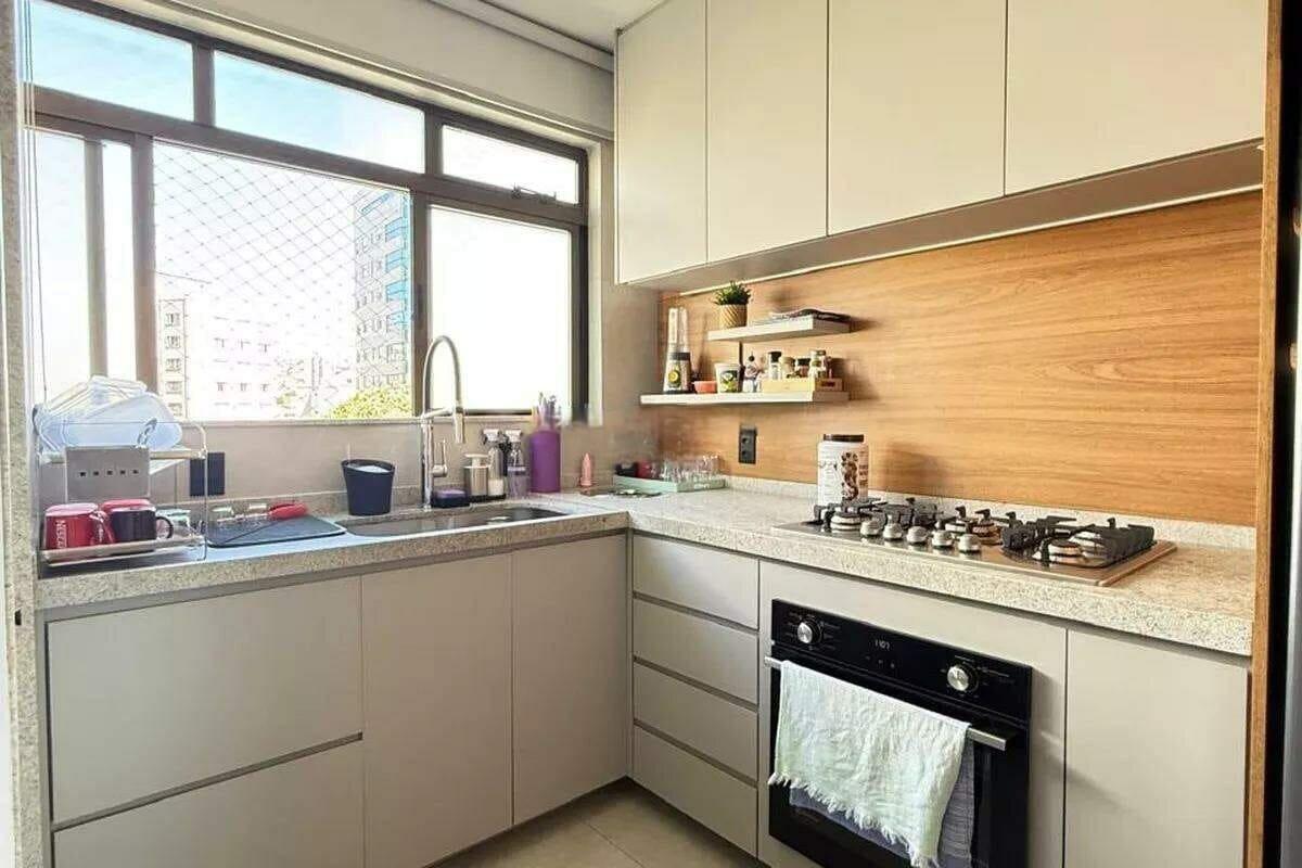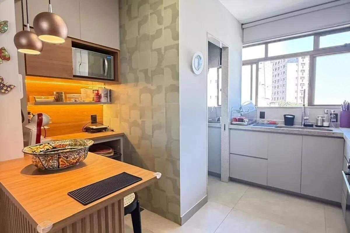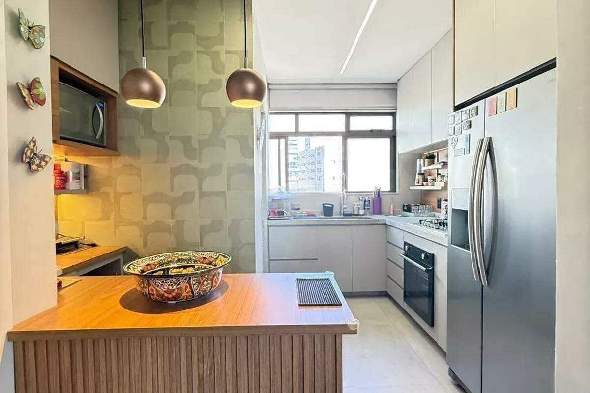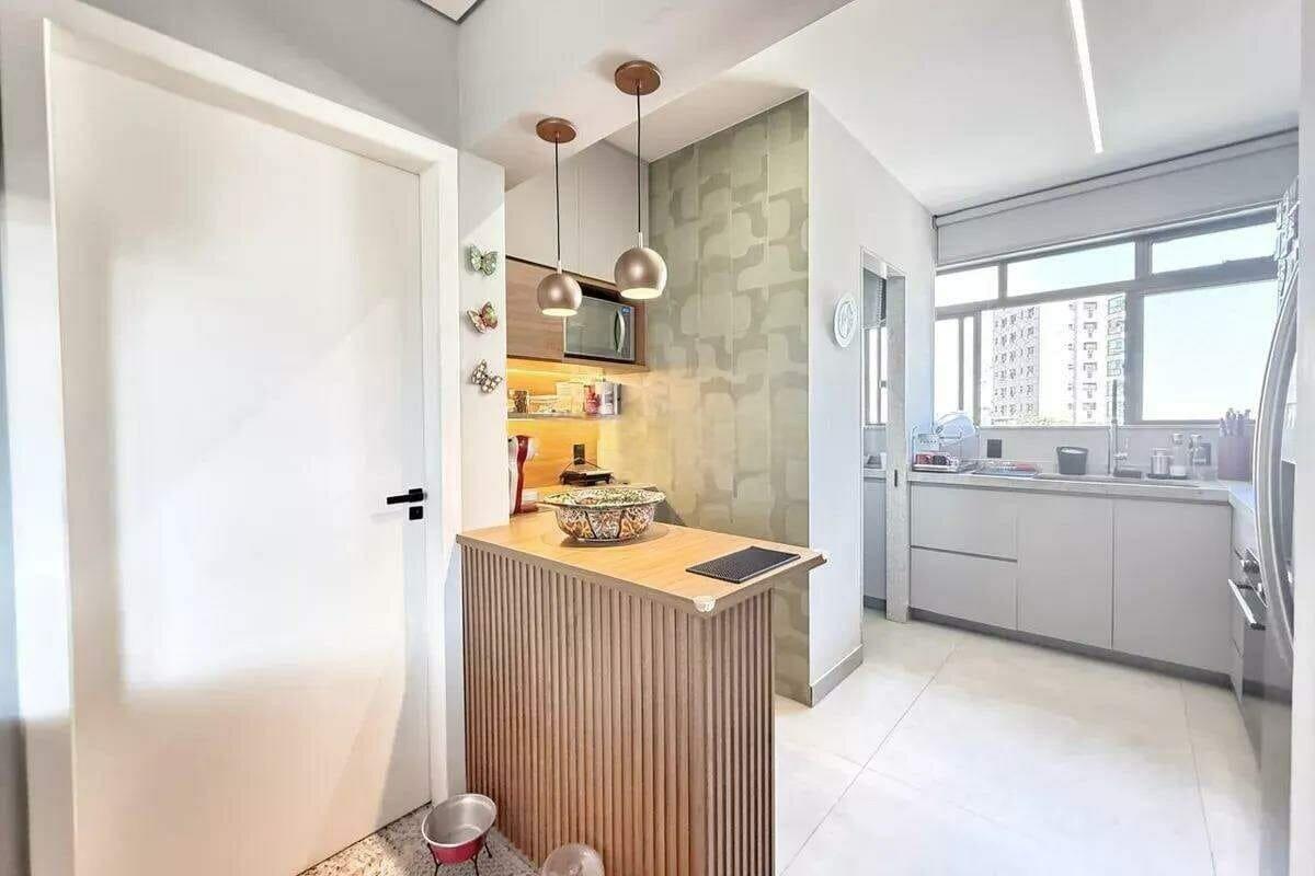 Apartamento reformado com área de 97m², sala para 02 ambientes, 03 quartos com armários, sendo 01 suíte, cozinha americana com armários planejados e área de serviço independente.