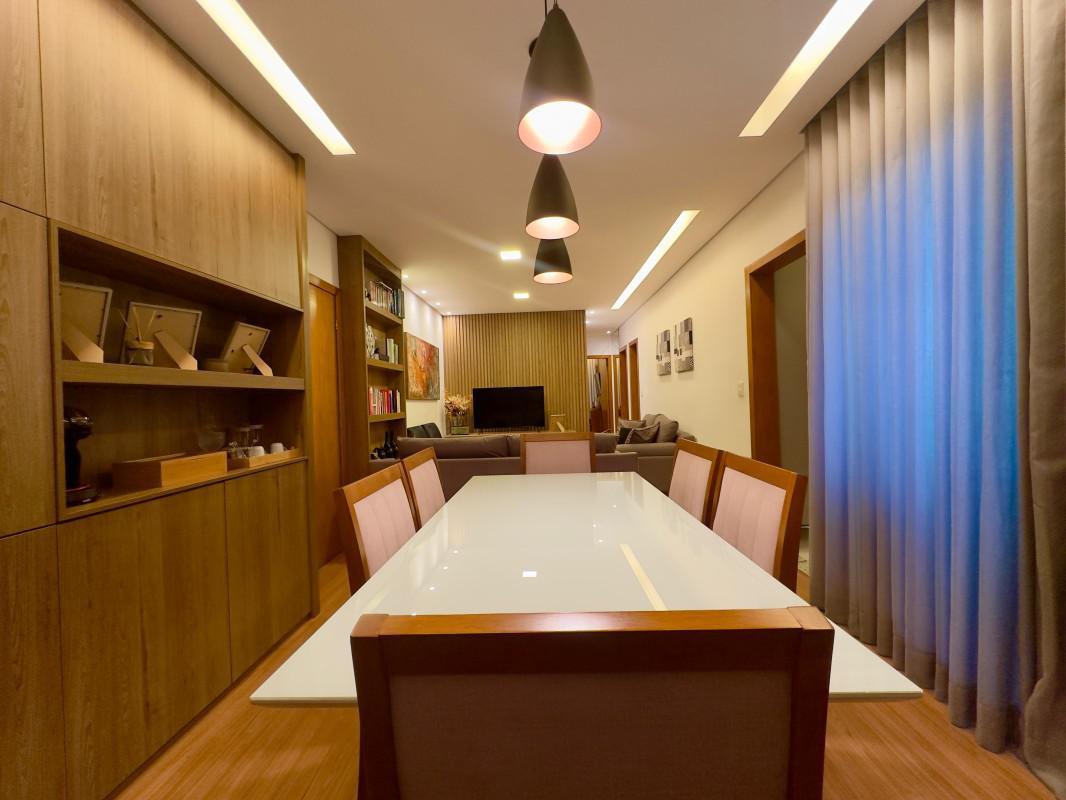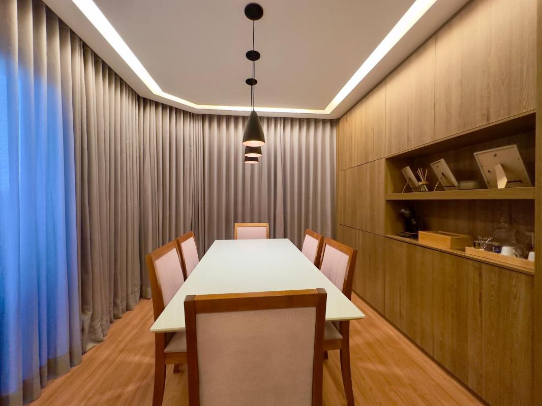 Destaque para a marcenaria planejada, iluminação moderna e acabamentos de alto padrão.