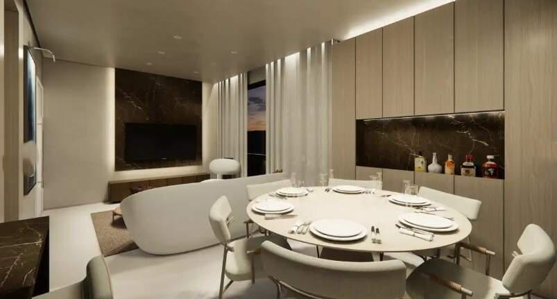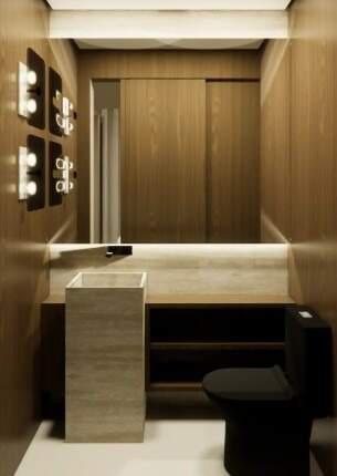 Sala ampla para 02 ambientes, lavabo, 03 quartos confortáveis sendo 01 suíte, banheiro social, cozinha planejada com bancada em granito e área de lavanderia independente