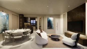 Área completa do apartamento com 85m², são 3 quartos com uma suíte e banho social. Sala ampla para dois ambientes, com varanda descoberta e lavabo. Cozinha com área e banho de serviço. 2 vagas de garagem.