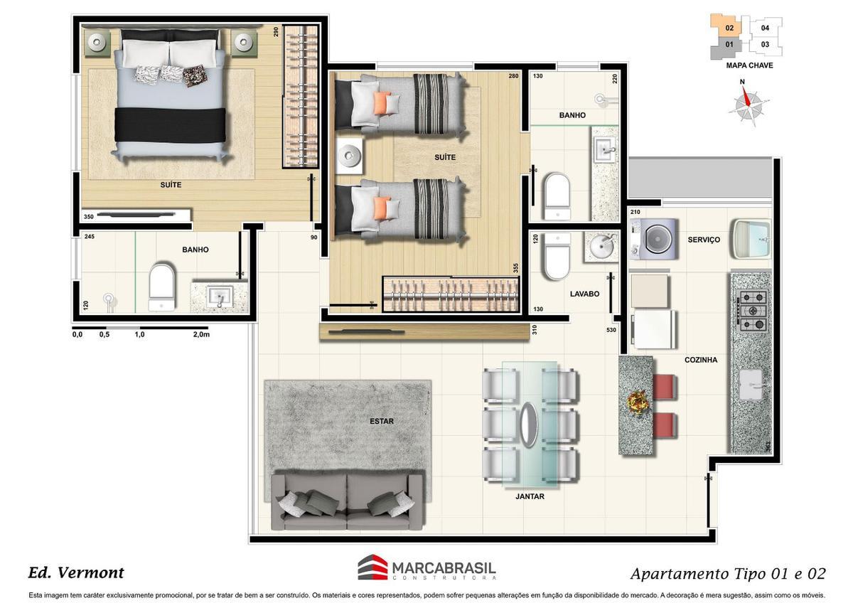 Chegou a hora de ter a melhor mudança da sua vida o prédio contará com apartamentos de 2 quartos (02 suítes e lavenidaabo) e 3 quartos (01 suíte e 02 semisuítes) - com plantas de 60m² e 74m², respectivamente. além de água, luz e gás individualizados e elevadores. o edifício . vermont também oferece área gourmet e espaço fitness para garantir a comodidade e praticidade do dia a dia. agende uma visita e venha conhecer um dos apartamentos e as condições ideais para você adquirir este excelente imóvel! obs.: unidades disponíveis!