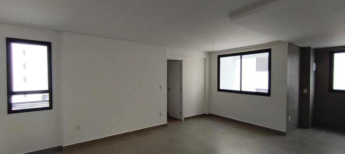 Apartamento com sala 2 ambientes com piso porcelanato, conjugada com ampla cozinha e área de serviço, ampla bancada em granito preto, revestimentos em porcelanato, 03 quartos com piso laminado de madeira, portas em MDF brancas, banho social e suíte com bancadas em granito, cubas sobrepostas, revestimento em porcelanato.