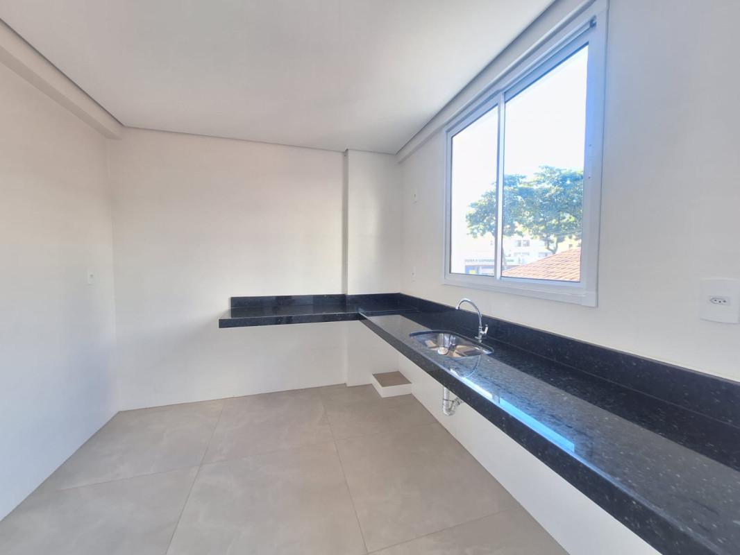 Cozinha ampla com bancada granito e piso porcelanato,