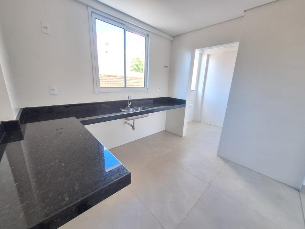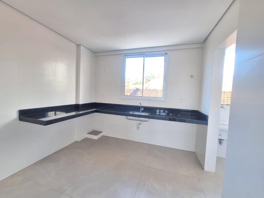 Cozinha ampla com bancada granito e piso porcelanato,