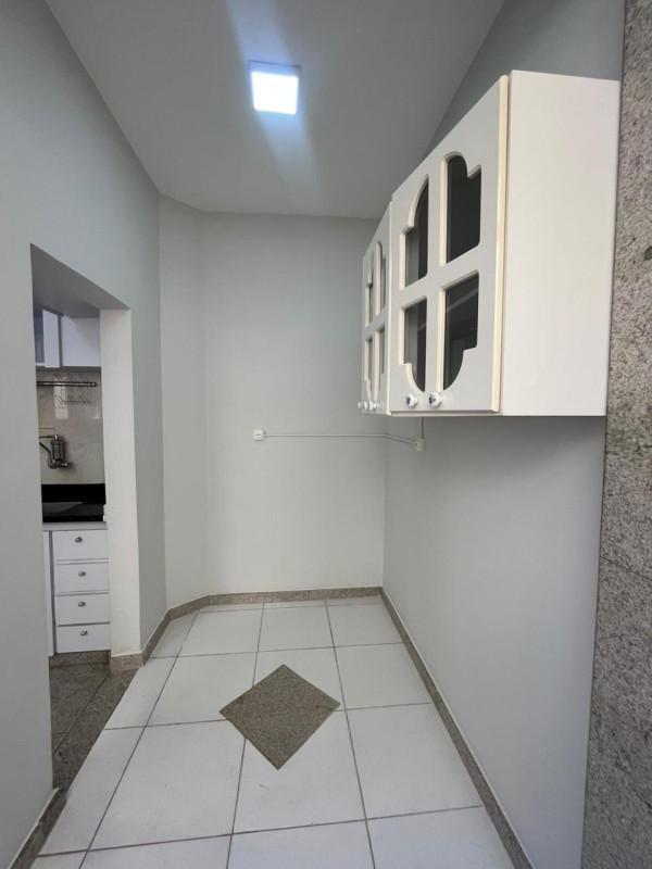 Ampla cozinha e área de serviços separada com banho de apoio, quarto de empregada aberto e incorporado ao ambiente de cozinha;