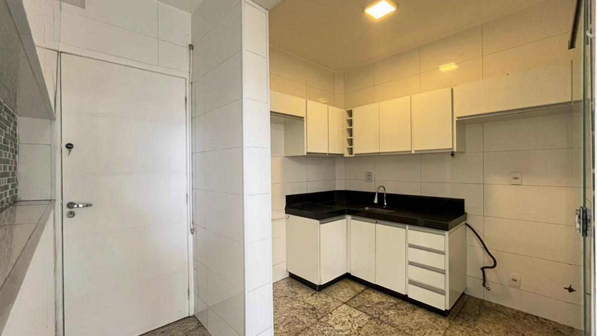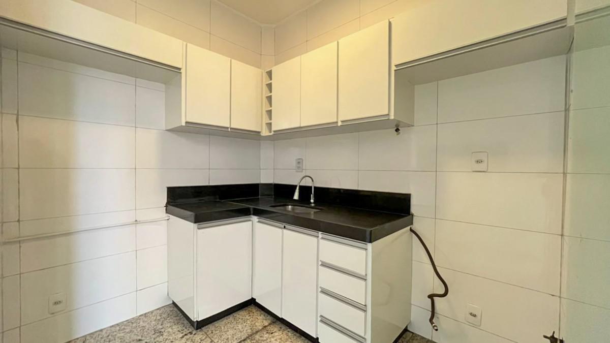 Cozinha com bancada em granito, armários planejados e piso em cerâmica;