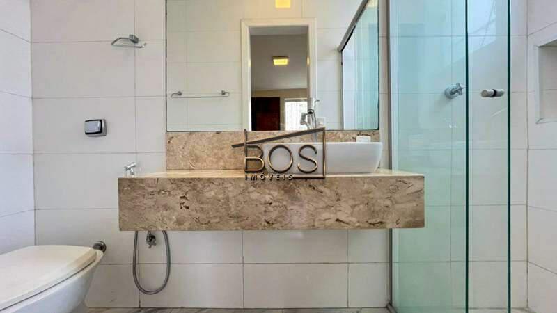 - Banheiro social com bancada em granito, espelho e box em blindex