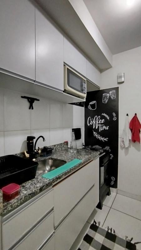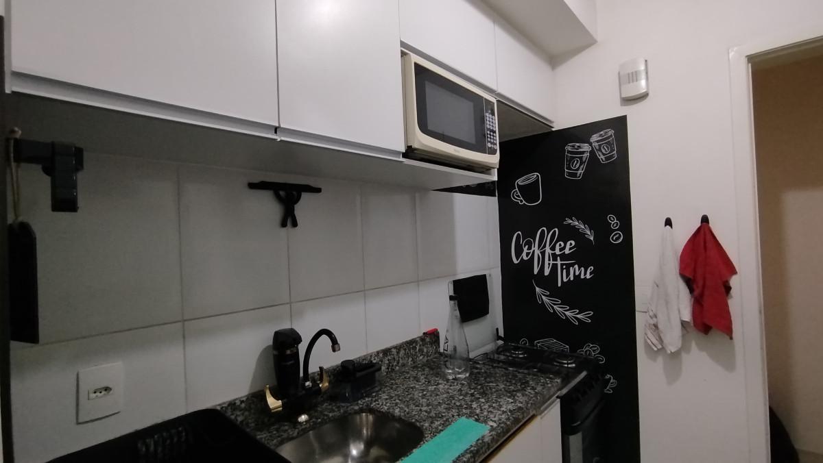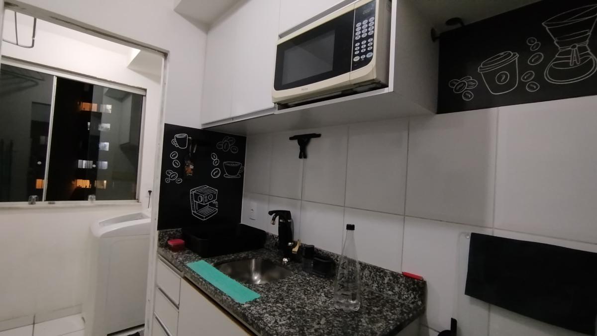 A cozinha é funcional e bem planejada, equipada com armários superiores e inferiores, garantindo ótimo aproveitamento de espaço.