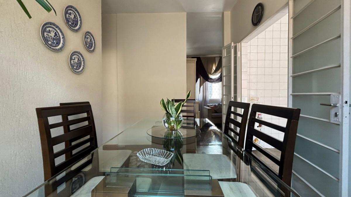 A planta é composta por sala para dois ambientes, banho social, cozinha funcional, área de serviço independente e dependência completa de empregada, oferecendo organização e comodidade aos moradores. O apartamento dispõe ainda de armários planejados nos quartos, banheiros e cozinha, além de box no banheiro e portas amplas nos quartos e corredores, que favorecem a circulação e o aproveitamento dos espaços.