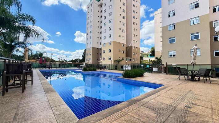O condomínio oferece área de lazer completa, com piscina, academia, salão de festas e playground.