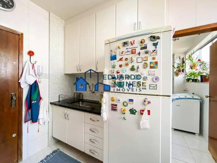 Apartamento 96 m²; sala para 2 ambientes, piso em tábua corrida, teto em gesso e iluminação planejada; 3 quartos com armários, piso em taco, janelas com esquadria de alumínio com venezianas, sendo 1 suíte com closet; banhos com box, armários e espelhos; cozinha com armários, bancada em mármore, piso em cerâmica; área de serviço independente.
