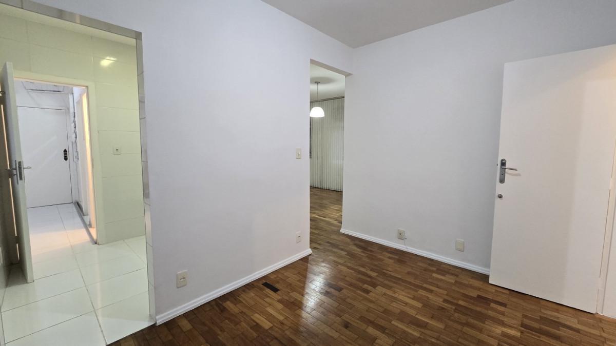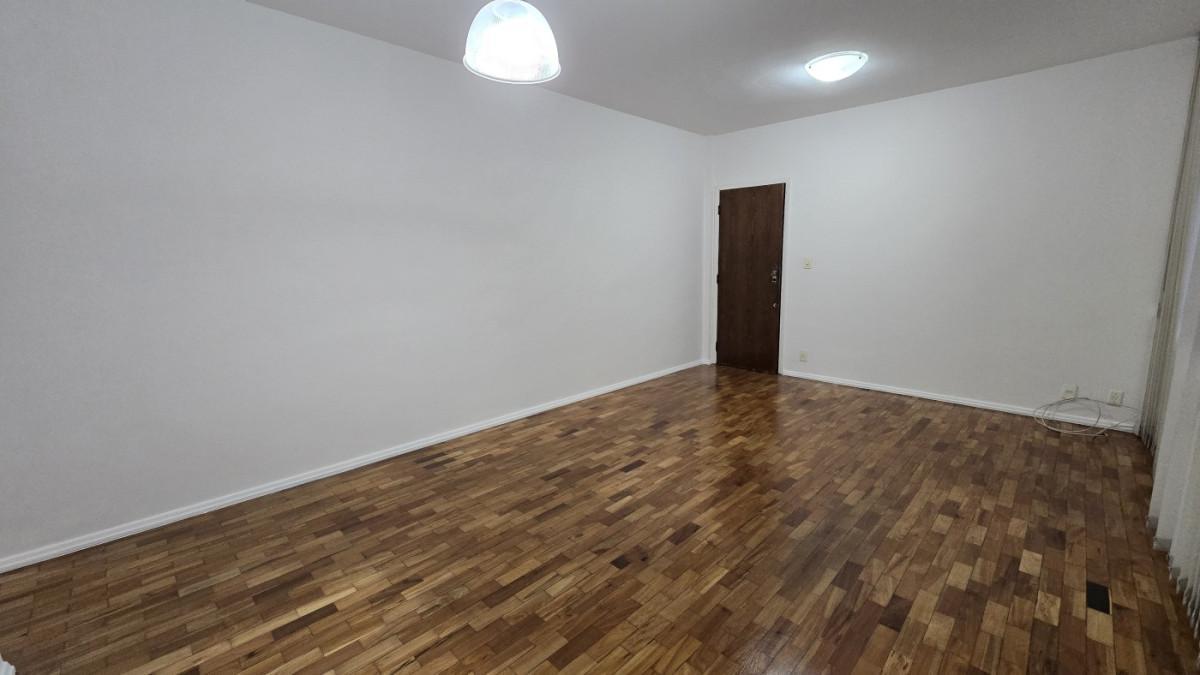 Apartamento com área de 123m², sala de estar, copa separada, 03 quartos amplos, banheiro social, cozinha com armários, ampla área de serviço e DCE.