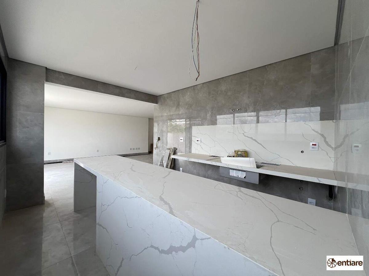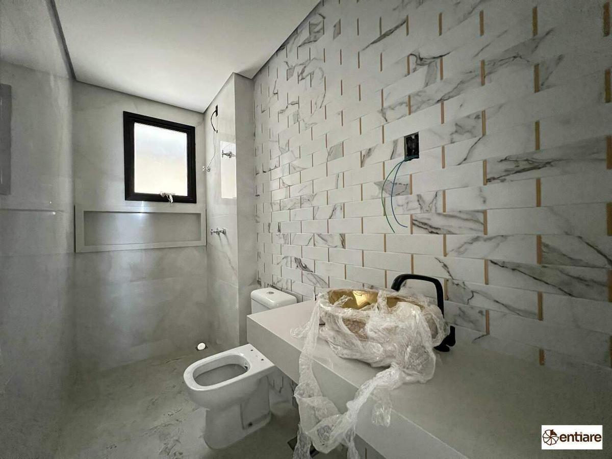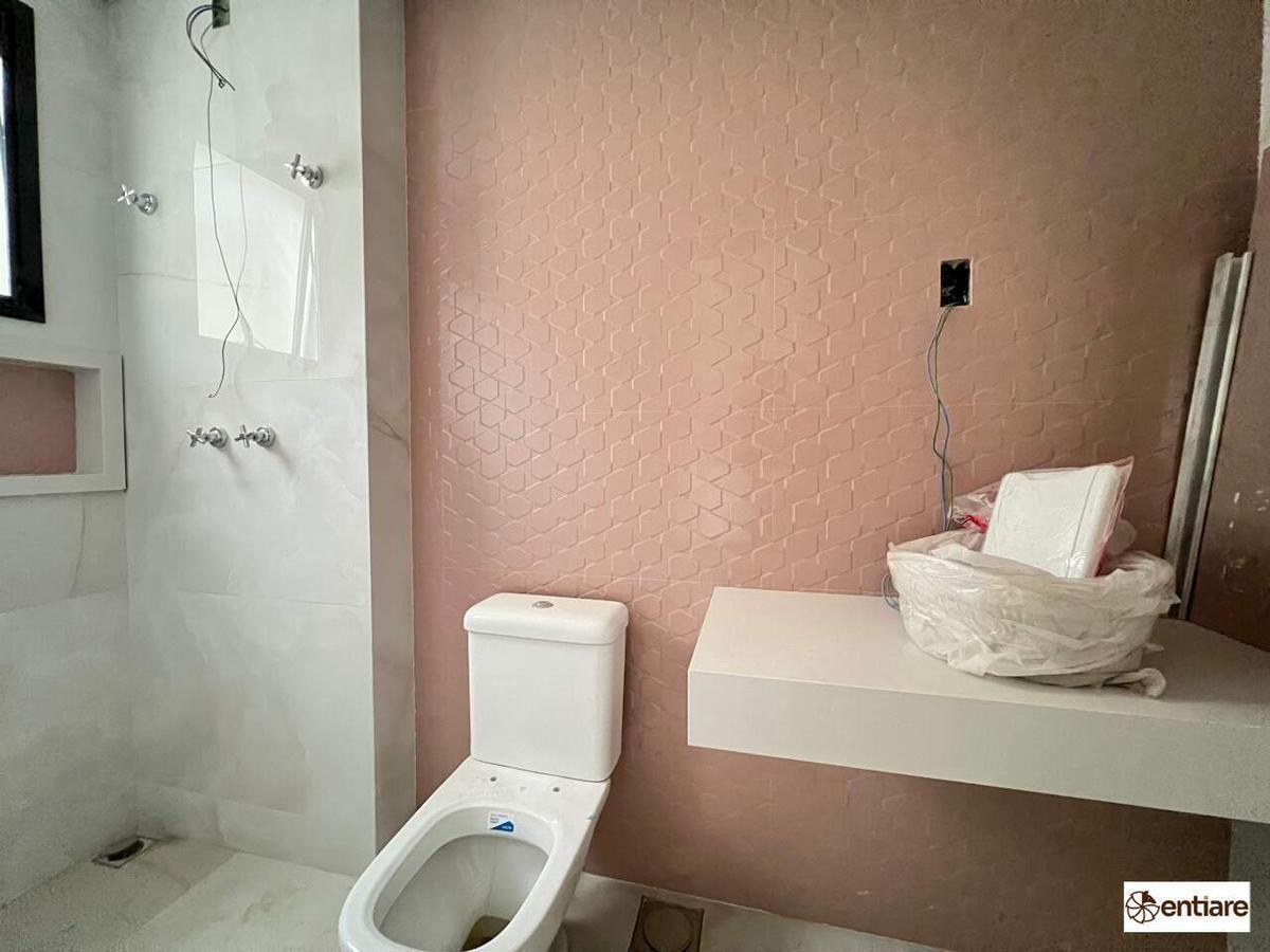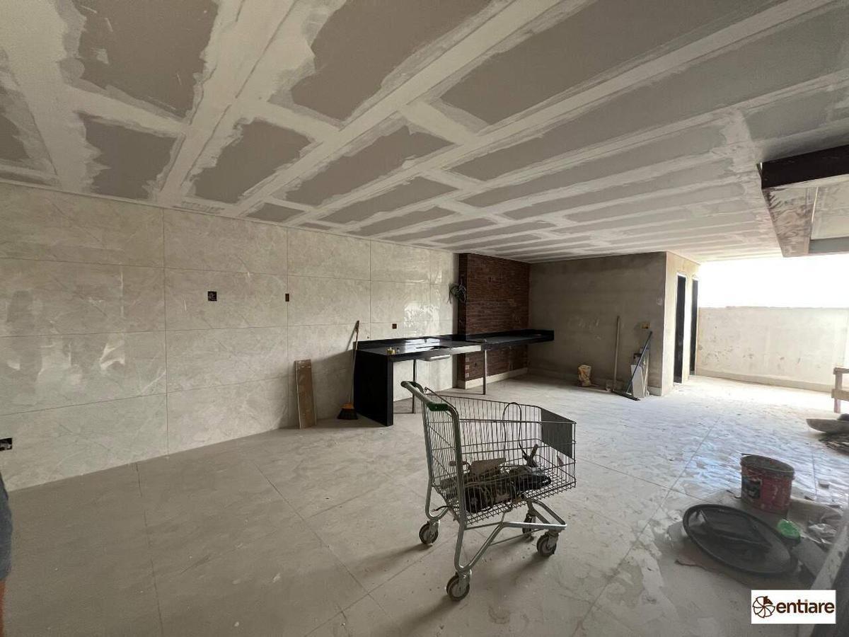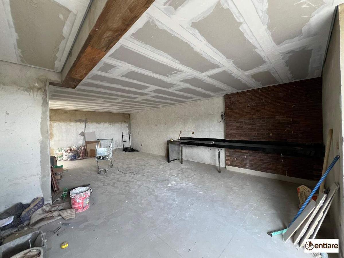 Sala ampliada, cozinha americana, 3 Qts, sendo 2 suítes, piso todo em porcelanato. Área gourmet privativa com bancada em granito, churrasqueira e 2 lavabos.